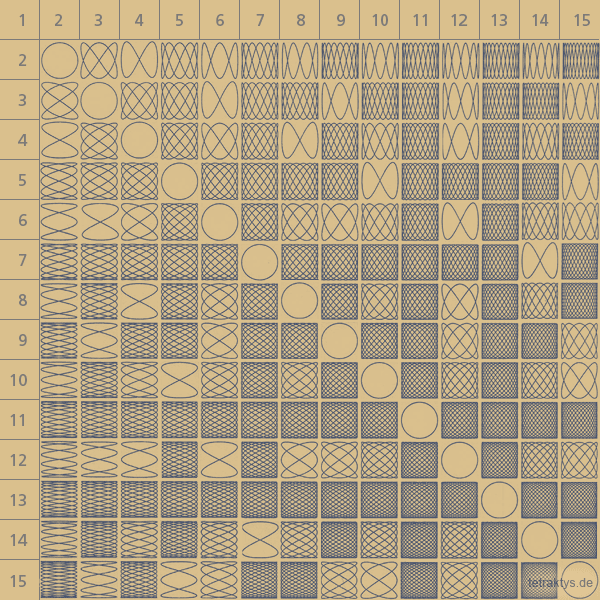 Hier ein Link zu einer Seite, auf der man den Lissajousfiguren die entsprechenden musikalischen Intervalle zuordnen kann: