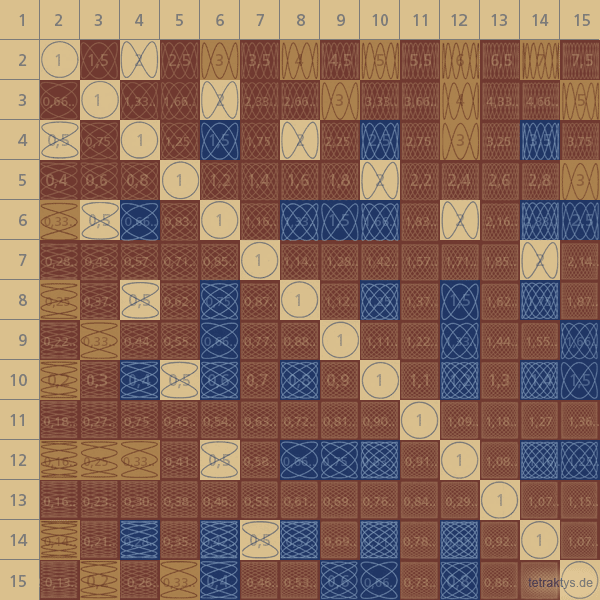Hier finden Sie Einzelheiten zum Lambdoma aus der Sicht der Harmonik und der Musiktheorie: