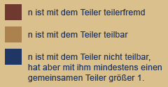 zeigt nun die entsprechenden Positionen dieser drei Teilbarkeitskonstellationen, gemäß der oben